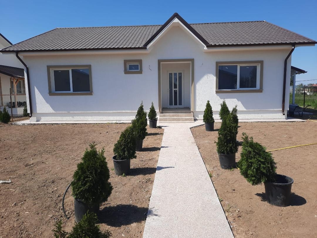 Fara comisioane, in Sabareni la 7 minute de centrul comunei (Profi, scoala, gradinita, restaurant, farmacie, teren de fotbal, primarie, cabinet veterinar, diverse marketuri, mijloace de transport, etc.), am placerea sa va prezint in complex securizat de case noi, o casa cu 4 camere si 2 bai regim parter + pod mansardabil cu placa de beton izolata la interior, la exterior este izolata cu polistiren de 10cm, terasa amenajata cu beci destul de generos, se preda gata finisata la chei cu finisajele la alegerea clientilor (gresie, faianta, parchet, obiecte sanitare, usi de interior), centrala pe gaze, tamplarie termopan, curtea se preda amenajata cu alei betonata si pavate cu pavele sau granit, gazon montat cu sistem de aspersoare, pomi, curte imprejmuita cu gard, porti de acces pietonal si auto, platforma betonata de parcat masina, se preda bransata la gaze, curent, put cu hidrofor si fosa, se accepta si credit, chiar merita vazuta! Pentru detalii suplimentare si vizionare ne putem auzii la telefon in fiecare zi, de luni pina duminica intre orele 09 -21.30
