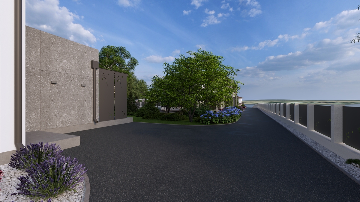• Acces securizat, cu cabina de paza si casa administrativa