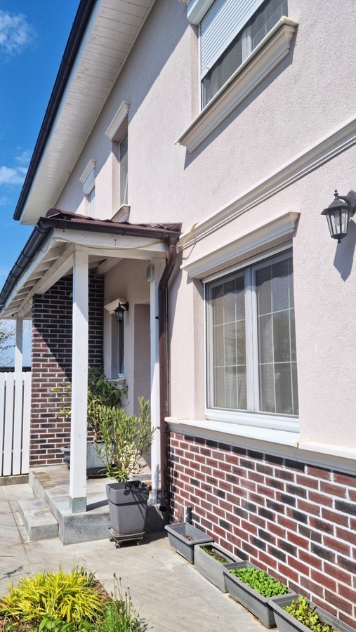 Casa este cuplata pe o latura, dar ofera intimitate si liniste, fiind separata de cealalta casa prin zidarie dubla si izolatie cu polistiren.