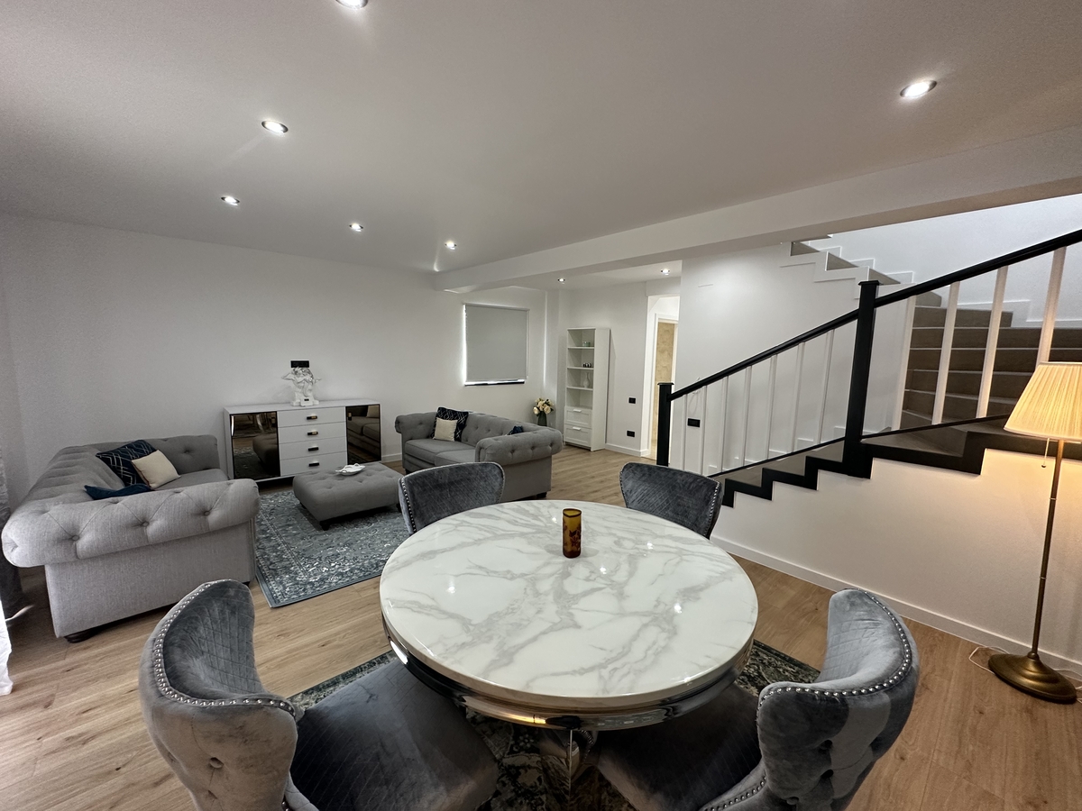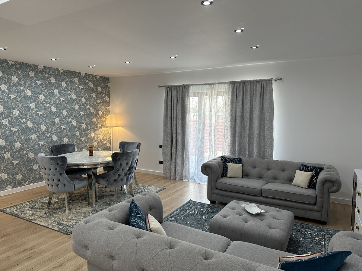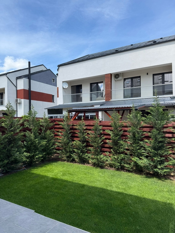 Duplex in zona Tunari, Complexul Paris Residence,P+1E, 4 camere,constructie 2021, Su-103 mp, teren 250 mp, avand toate utilitatile, casele sunt construite din caramida, termoizolate, la parter-living, bucatarie, baie, hol, terasa, iar la etaj-3 dormitoare, 2 gs, 2 balcoane, mansarda.