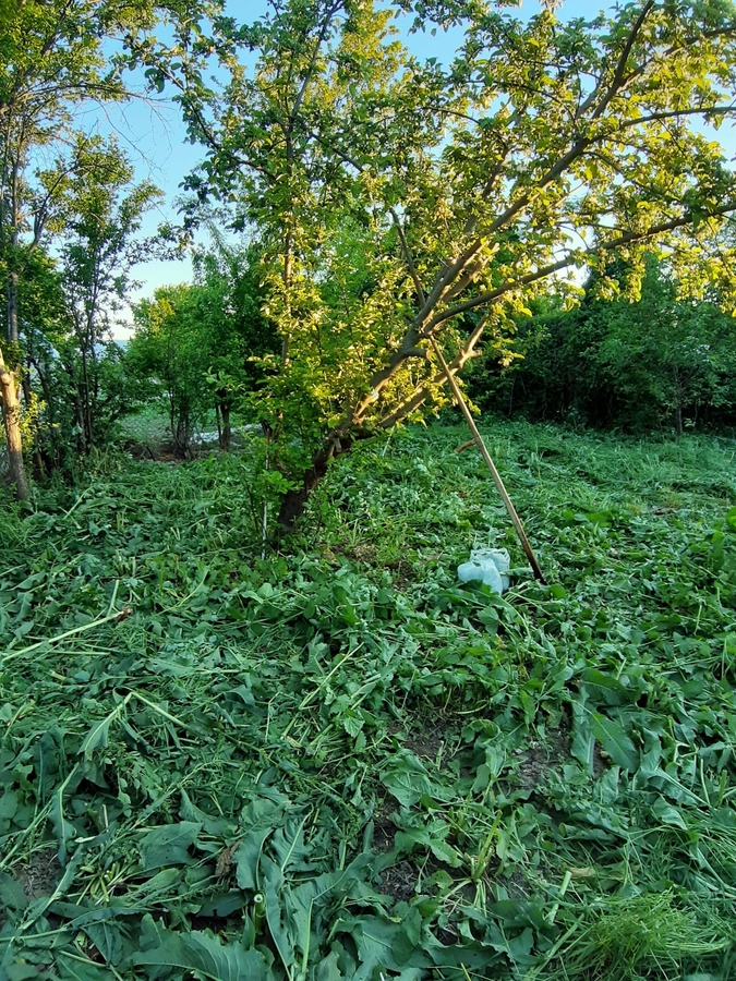 Peste 50 de pomi fructiferi, tufe de lavanda, arbusti de liliac.