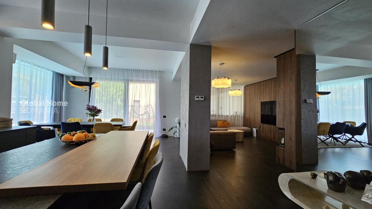 Exteriorul este, fara indoiala, un highlight: curte amenajata, terasa si piscina incalzita, un spatiu care transforma fiecare zi intr-o experienta de vacanta, indiferent de sezon.