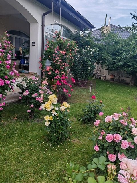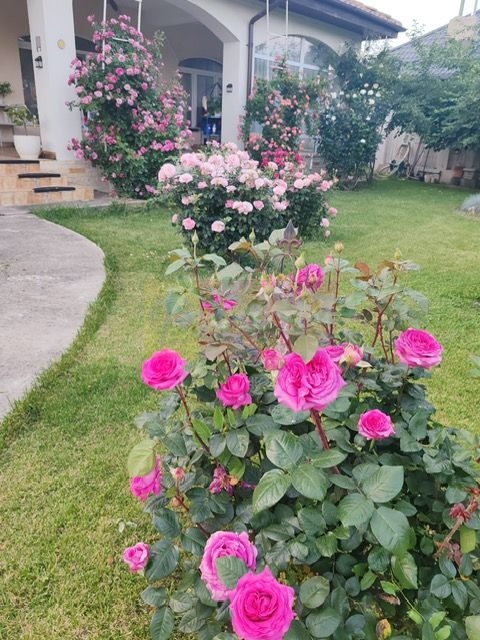 -curte amenajata impecabil cu brazi maturi, pomi fructiferi si flori