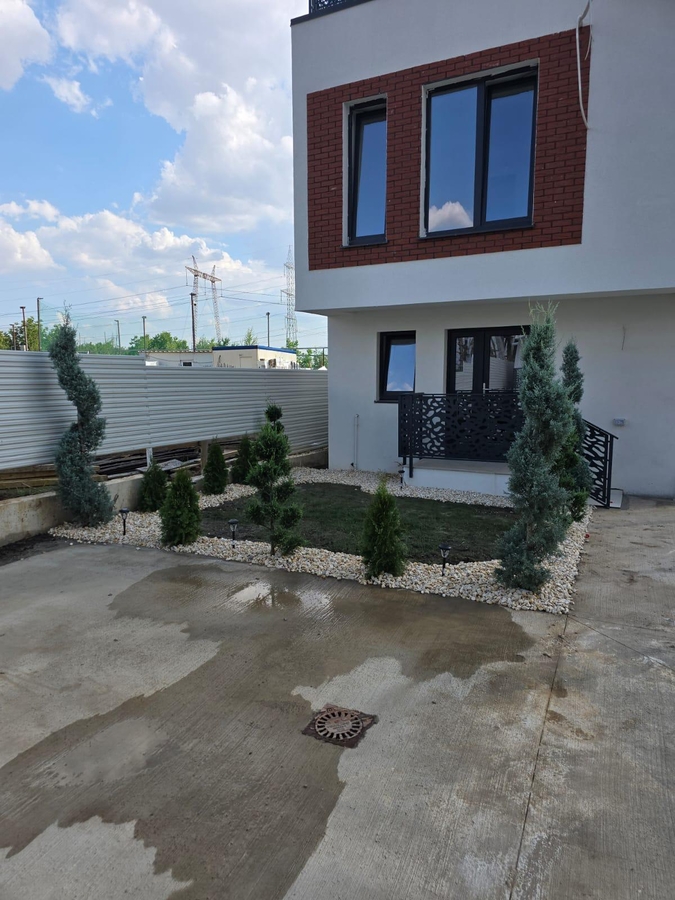Casele au fundatii si pereti individuali 20 mp, terasa 30 m, curte 60 m. Structura este din beton.