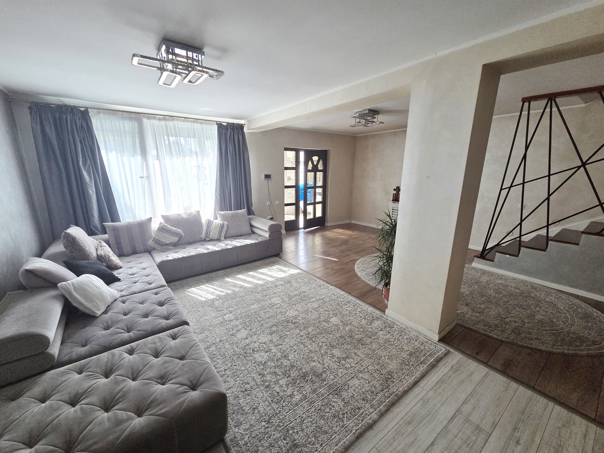 Va ofer spre vanzare o vila situata in Voluntari, langa granita cu Bucuresti si cartierul Andronache, situata intr-o zona linistita de case. Vila a fost construita in 2004 si renovata integral in 2022, dispune de o curte amenajata si pavata, unde regasim un foisor inchis cu termopan, fantana arteziana, balansoar si trambulina pentru copii. Casa are o suprafata generoasa de 290 mp, dispusa pe parter, etajul 1 si mansarda. Este racordata la toate utilitatile.