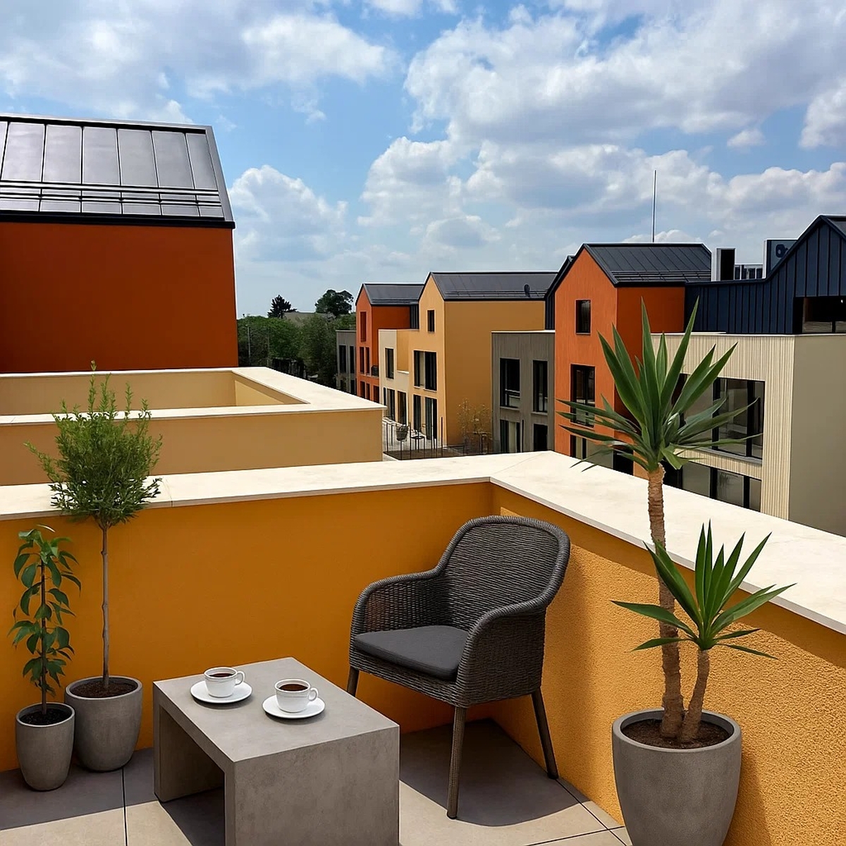 Casele de tip townhouse au un nivel redus de inaltime - P + 1 + Mansarda si pun la dispozitie suprafete nete cuprinse intre 133 si 157 mp.