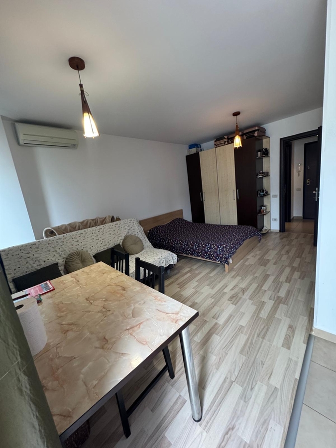 Garsoniera este complet mobilata si utilata, are centrala proprie, aer conditionat si bucatarie deschisa.