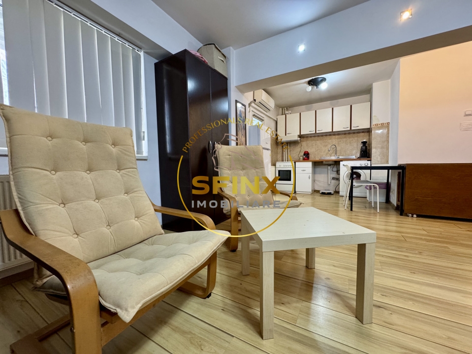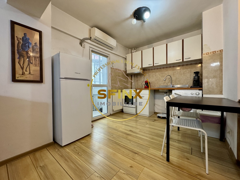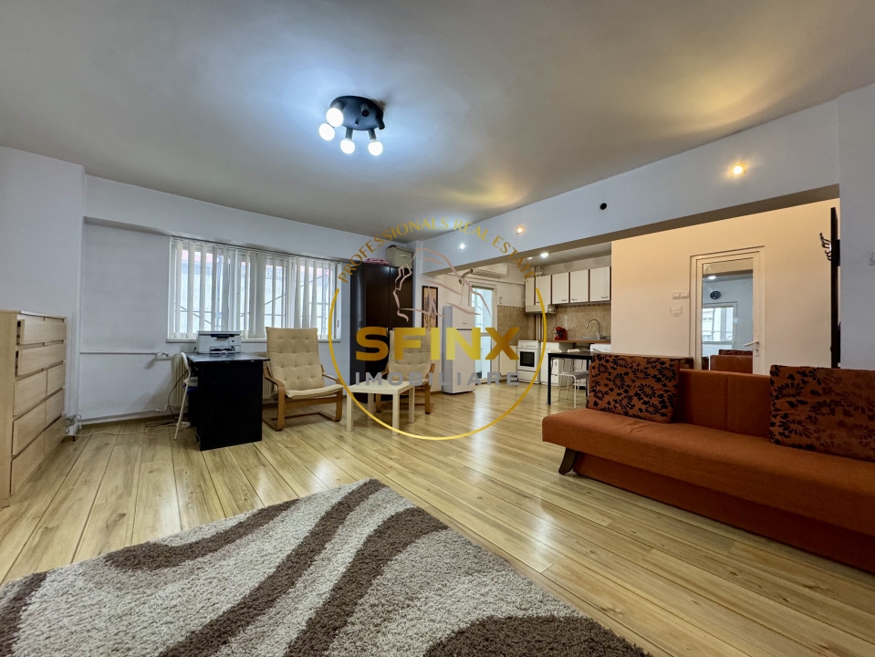 Garsoniera de 42 mp, amplasata chiar pe Calea Calarasi, langa Delea Noua si Hala Traian, intr-un bloc mixt din 1996 (in curs de reabilitare termica), cu acces direct la bulevard si loc de parcare.