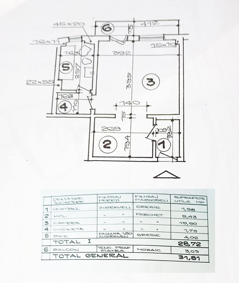 Garsoniera are o suprafata utila de 29 mp si suprafata totala de 32 mp si are centrala termica proprie.