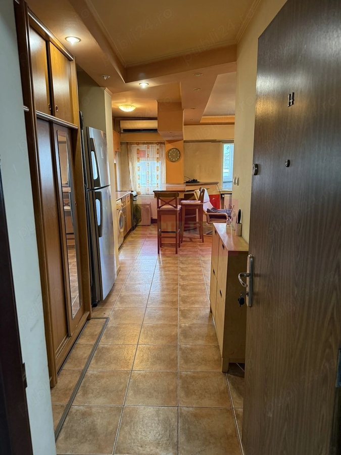 Garsoniera se vinde asa cum se vede in poza cu frigider Samsung, televizor Philips, birou si blat bar din lemn masiv.