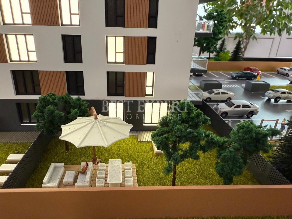 Zona exterioara este amenajata cu spatii verzi generoase, gradini private, arbori plantati, alei de promenada, locuri de relaxare si un spatiu de joaca sigur si modern pentru cei mici – totul creat pentru comunitate si armonie.