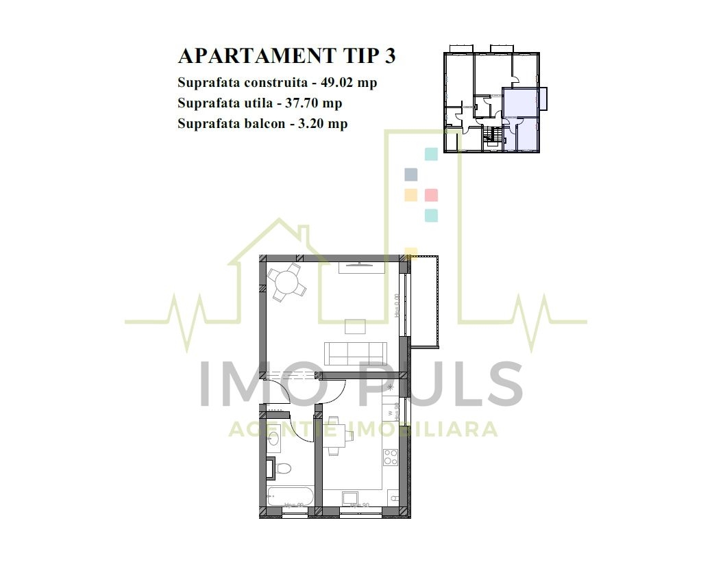 - 37.7 mp + 3.2 mp balcon, disponibil la mansarda – 70.000 Euro;