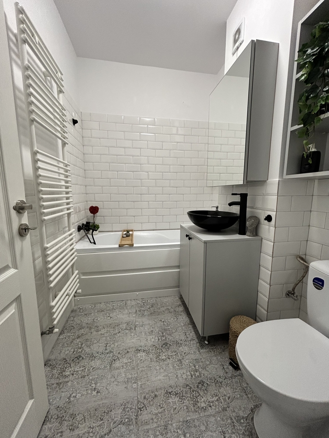 Electrocasnice de cea mai buna calitate, toate clasa energetica A++: centrala termica pe gaz, masina de spalat rufe, masina de spalat vase, cuptor, aragaz pe gaz, hota, frigider.