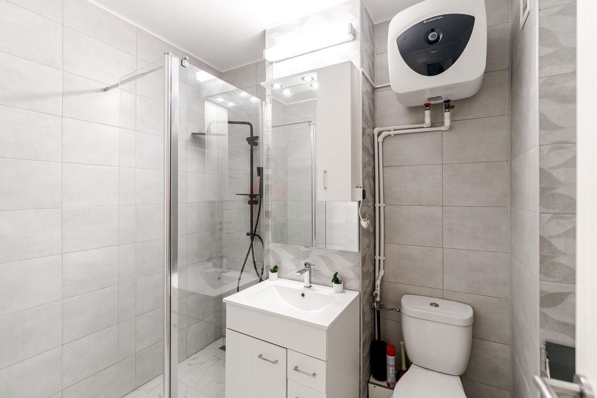 Compartimentare flexibila – garsoniera a fost impartita cu perete de rigips (se poate indeparta usor) astfel incat exista spatiu delimitat pentru: dormitor + camera de relaxare