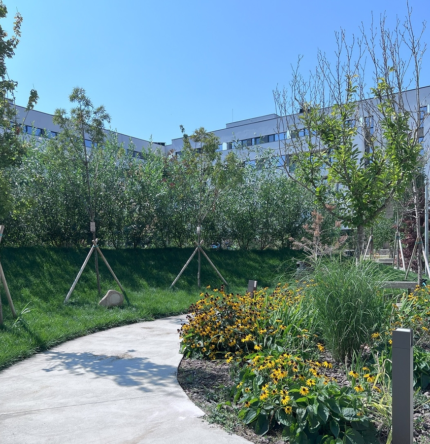 Faza 3 a fost finalizata in Toamna 2024. Acesta respecta standardul nZEB – adica o casa cu consum de energie aproape de zero – Cladirile din Faza 3 sunt evaluate energetic A, s-au instalat aproape 300 de panouri solare care vor produce energie pentru incalzirea apei menajere, apartamentele vor fi dotate cu sisteme de ventilatie cu recuperatoare de caldura, iar izolatia termica a peretilor exteriori a fost marita.