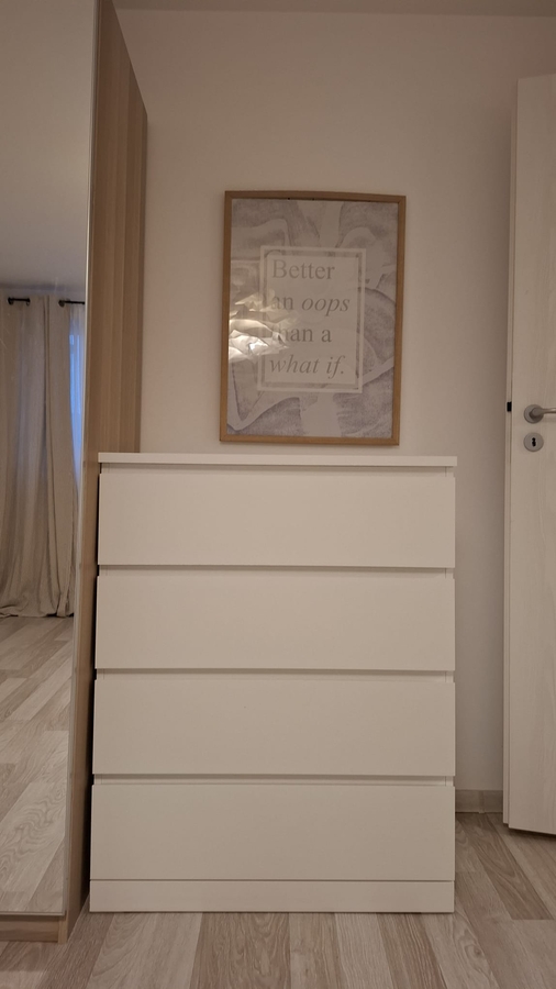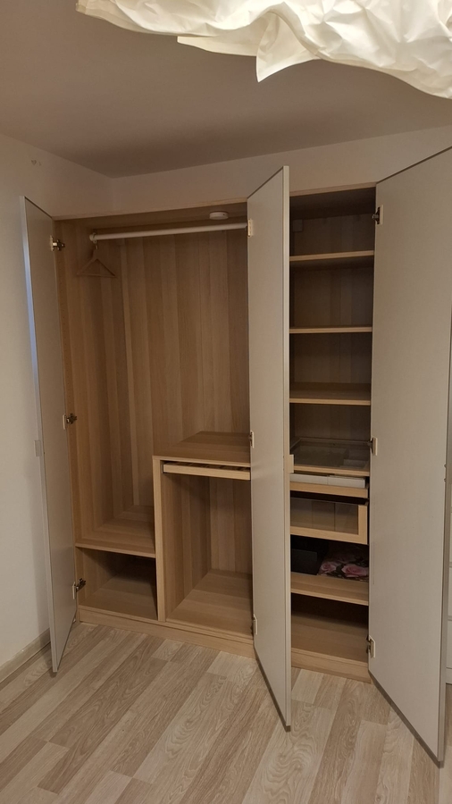 - Dormitor: dulap 3 usi cu oglinzi, comoda 4 sertare, comoda TV (mobila IKEA aproape noua) + aer conditionat.