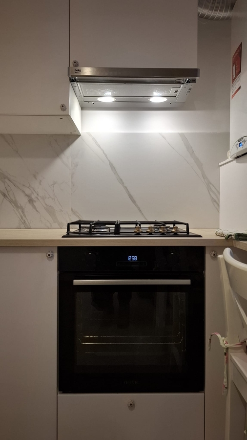 - Bucatarie: mobilier la comanda Ikea, cuptor, plita si hota incorporabila, combina frigorifica.