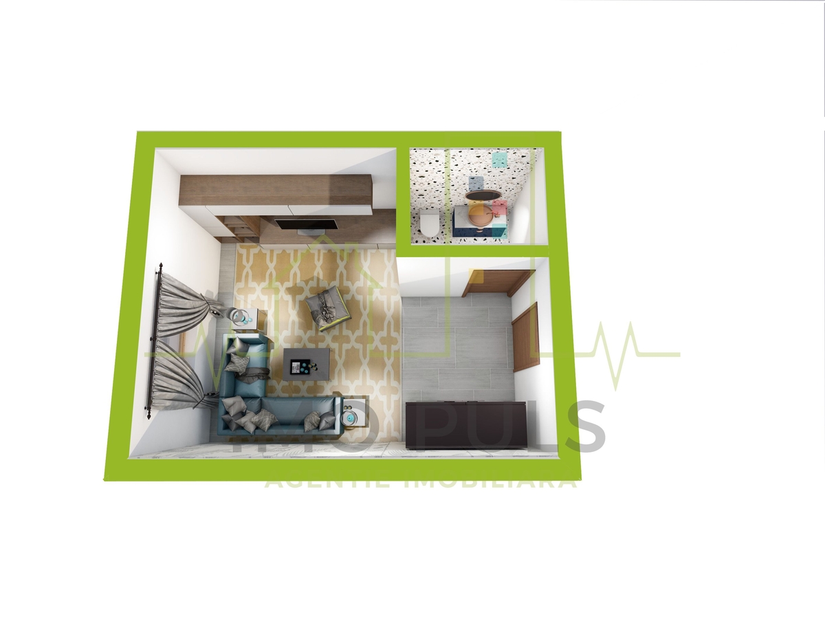 - detalii MOBILARE : bucataria mobilata si utilata (inclusiv plita, hota, combina frigorifica), mobilier camera, clima.