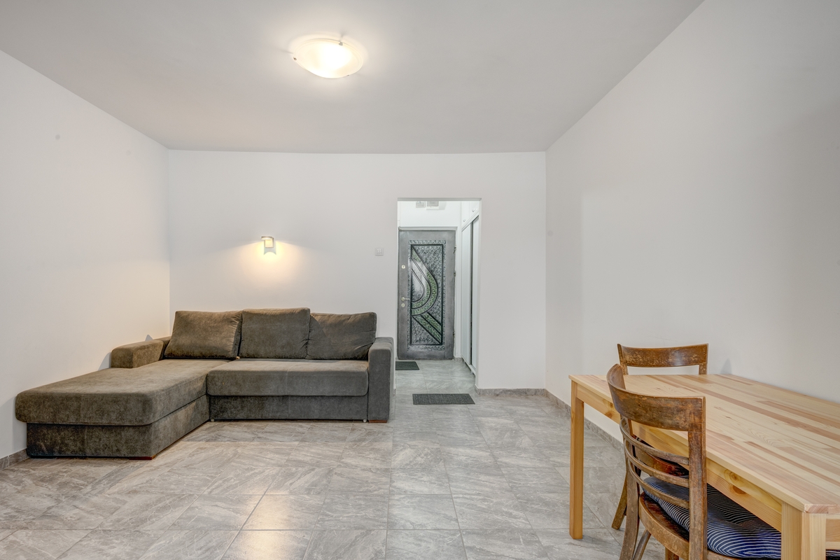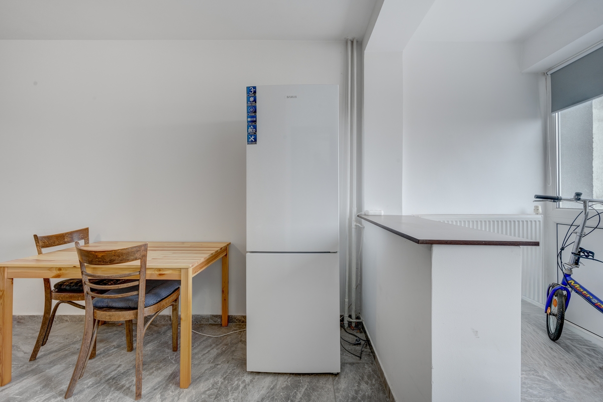 In 2020, garsoniera a fost renovata complet: schimbat instalatie electrica, instalatie sanitara, amenajata baia pentru a fi mai spatioasa. Mobilierul din bucatarie, dulapul mare de pe holul de la intrare, canapeaua extensibila din camera - toate au fost facute pe comanda, pentru a se potrivi cat mai bine in casa. Camera are aproape 18 mp si daca ai nevoie sa iti mai aduci mobilier, sa iti amenajezi un birou, ai spatiu suficient. Pentru ca planurile proprietarilor s-au schimbat dupa renovare, garsoniera a fost foarte putin locuita in ultimii 5 ani.