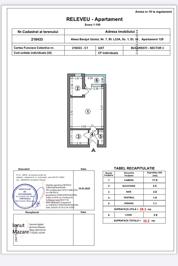 Vanzare garsoniera confort 1 semidecomandat, 32 mp suprafata utila.