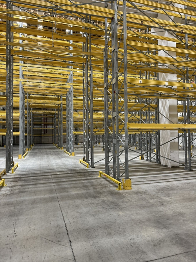 2. Depozit cu suprafata construita de 12.033 m2 - dotat cu sisteme de rafturi - 16.000 de spatii pentru paleti (cu un proiect pregatit pentru cresterea capacitatii la 25.000 de spatii pentru paleti europaleti) si un mezanin de 15.000 mp;