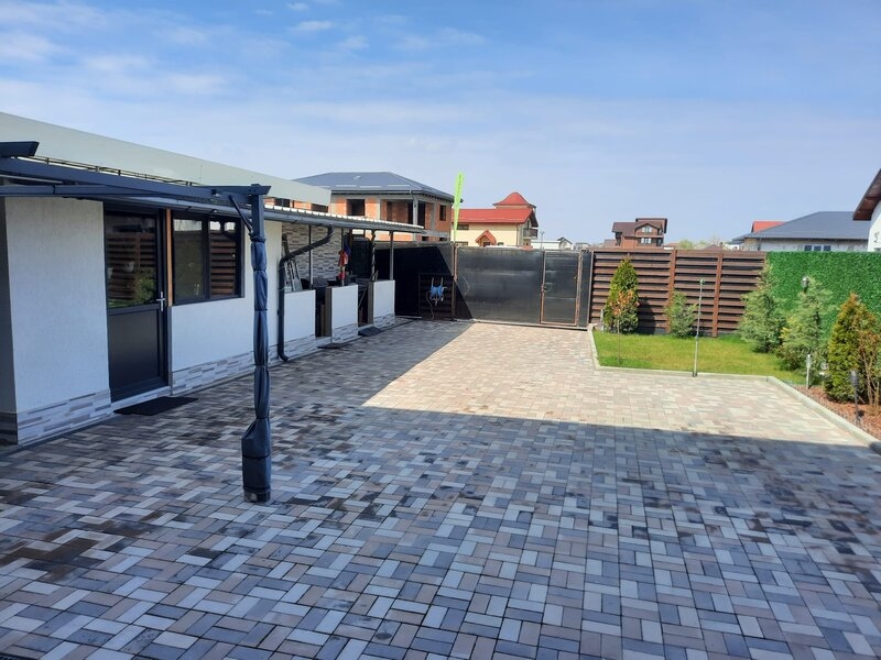 cartier nou proprietar vand casa, 4 camere decomandata 110 mp suprafata utila, teren 350 mp, toate utilitatile, apa curenta, canalizare, mobilata si utilata, totul nou. Plus spatiu comercial 80 mp suprafata utila (dotat cu panouri fotovoltaice), rulouri exterioare, porti electrice, beci de 25 mp.