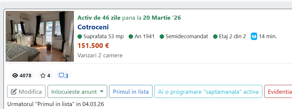 Vand spatiu comercial in Piata Straduintei- Bv Obregia. Imobilul este construit in anul 1972, spatial este reprezentat de o incapere unica cu suprafata de 25 mp si are doua vitrine una de 3, una de 4 ml.