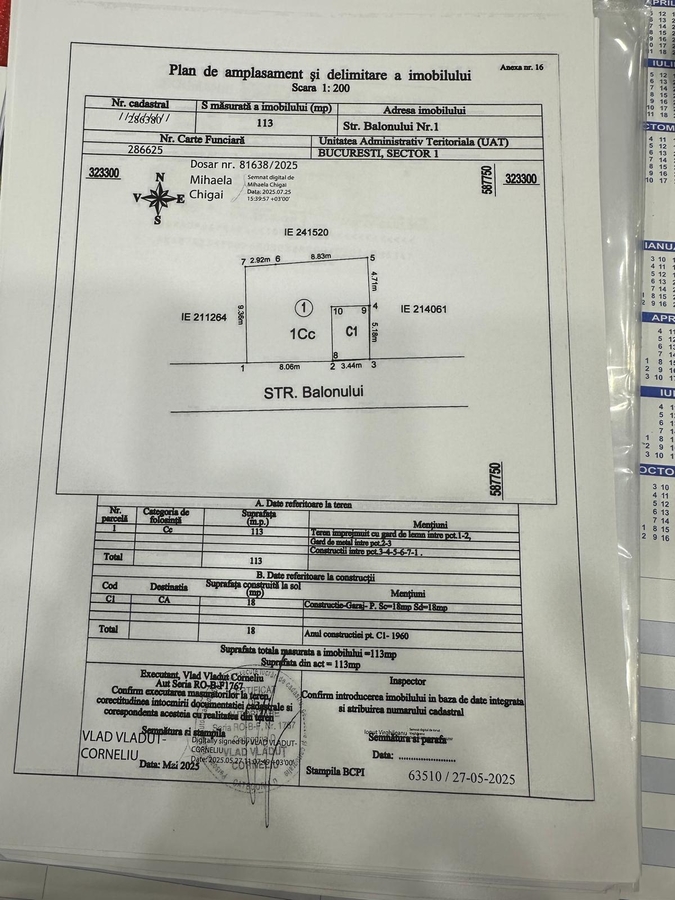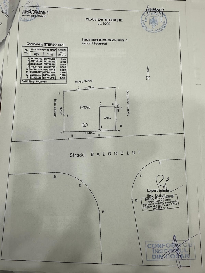 str. Balonului nr. 1, teren superpozitie in spate la D.R.P.C.I.V Pipera, in apropiere Hotel Cristal Palace, 113 mp, d 11.50 ml, liber doar un garaj pe fata,