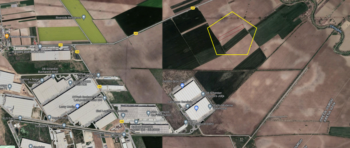 Se vinde urgent teren intravilan de 27300mp in zona autostrada A1 comuna Joita. Dimensiuni 77m x 361m. Este langa zona comerciala si logistica CTPark cu posibilitati reale de extindere a acesteia.