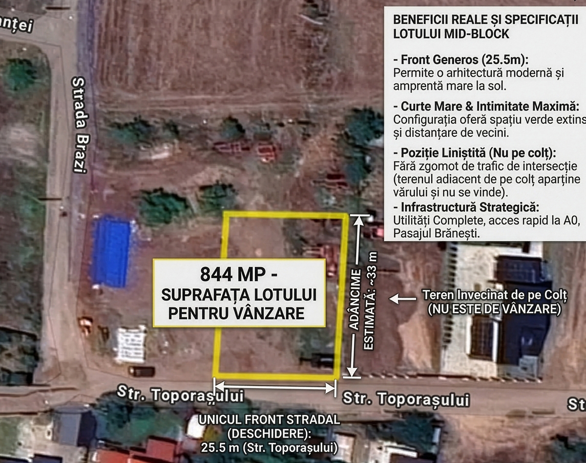 Branesti, 844 mp, deschidere 25.5m, investitie sigura