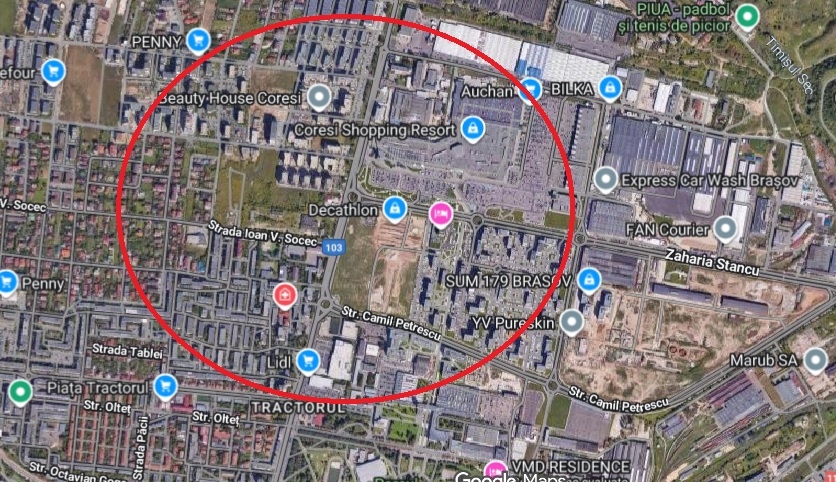 Terenul este deosebit datorita pozitiei sale fata de centrul comercial Coresi, gradinite si scoli, toate acestea fiind la doar 300 m distanta.