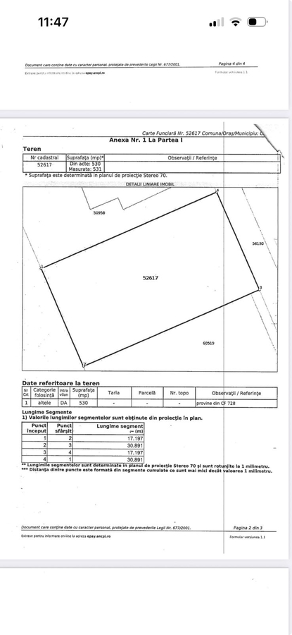 Teren Clinceni 530 mp, toate utilitatile, apa, gaz, canalizare, curent, zona de vile, nr. cadastral 52617, vecin lipit gard o latura 31 m lungime.