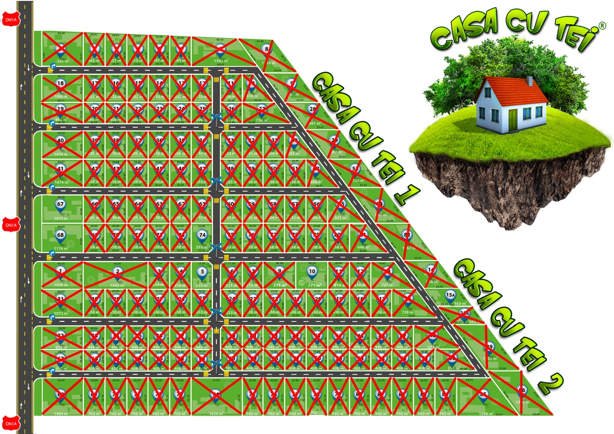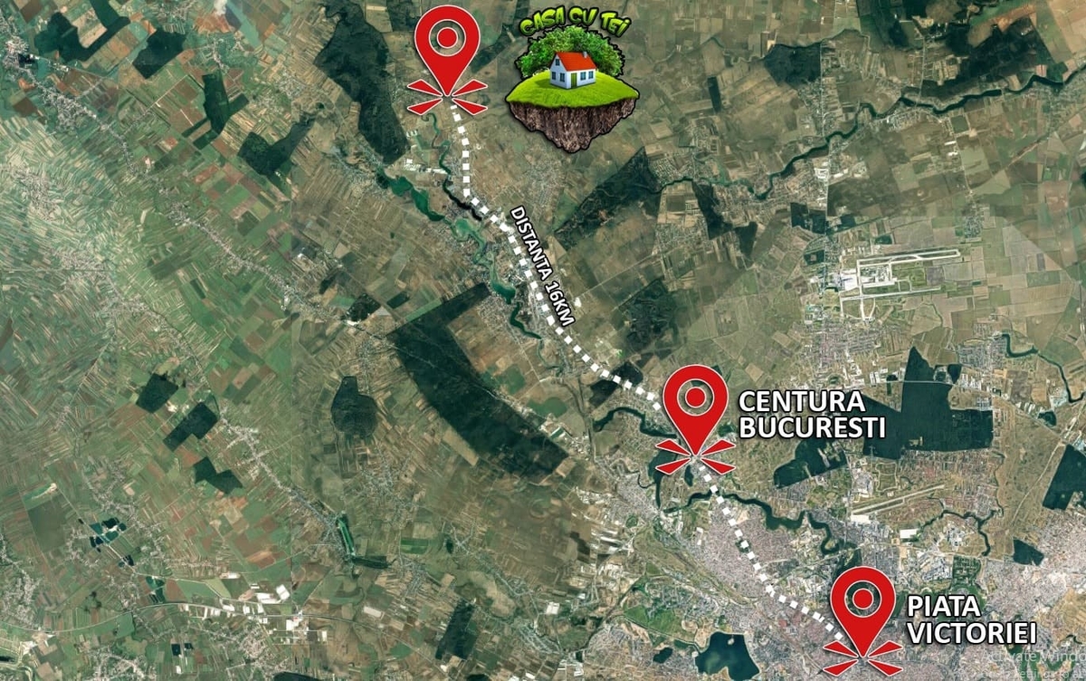 Ultimele loturi disponibile in cartierul Casa cu Tei, unde s-a construit in proportie de aprox 60%. Ansamblul Casa cu Tei este situat langa padure, dupa Buftea, in localitatea Crevedia, la 16 km distanta de Bucuresti, aprox 35 de min de Piata Victoriei. Accesul in ansamblu se face direct din DN1A, soseaua Bucuresti-Targoviste.