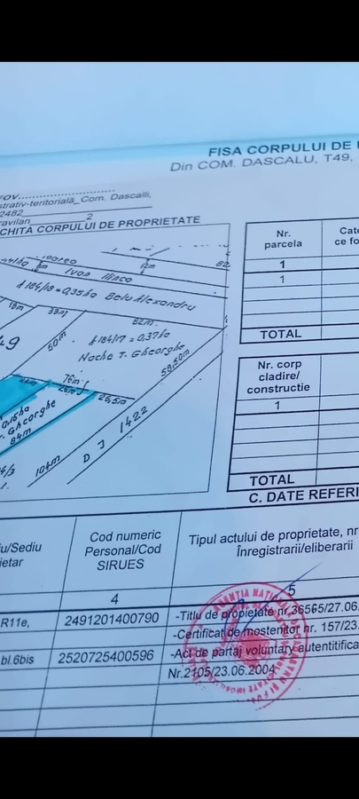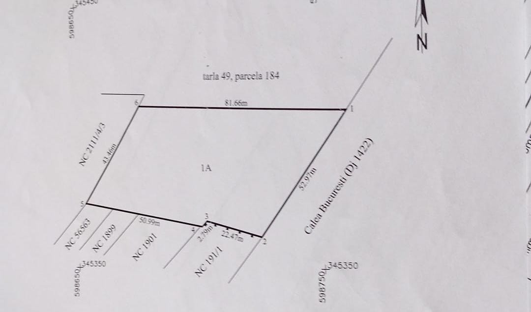 teren intravilan, 6.300 mp, se vinde integral nu pe parcele, deschidere 53 mp la DJ, in fata terenului teava de gaz si stalp curent, put pe teren, cad., intabulare, intre vile, 3 laturi imprejmuite, este necesar si defrisare pe o parte a terenului unde se alatura cu 3 parcele de teren in stanga terenului, se vinde doar integral 6.300 mp. Pret discutabil