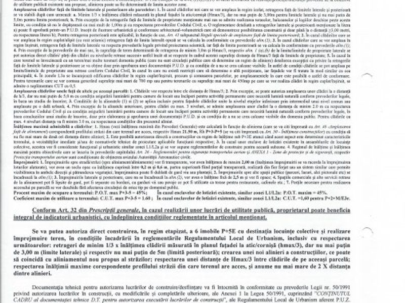 A fost obtinut Certificat de urbanism pentru 6 blocuri cu P+5 etaje aproximativ 20.000mp construiti pentru lotul de 12.000mp si P+1+M regim insiruit pentru lotul de 10.000mp care este si parcelat in acest moment,