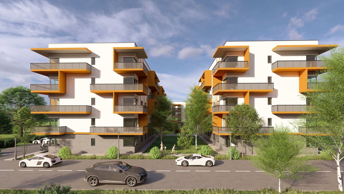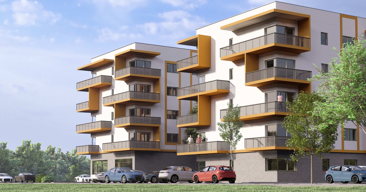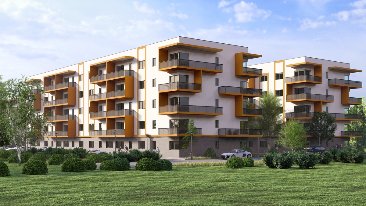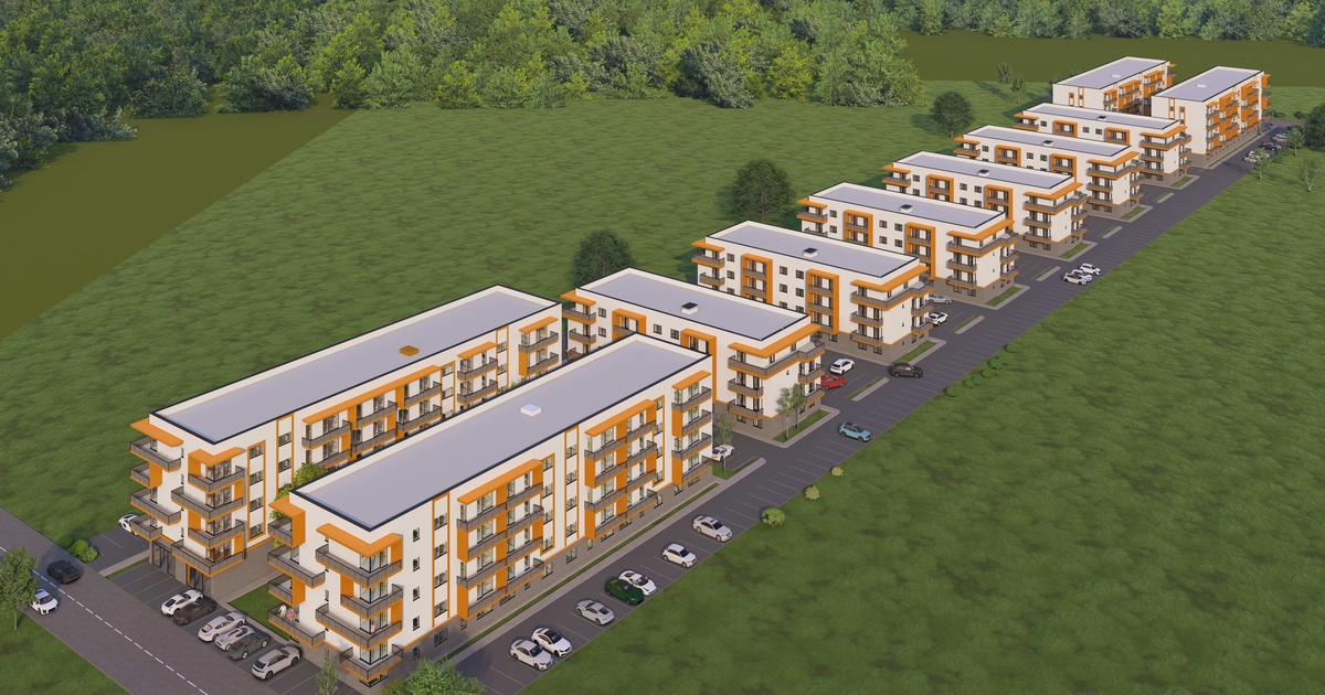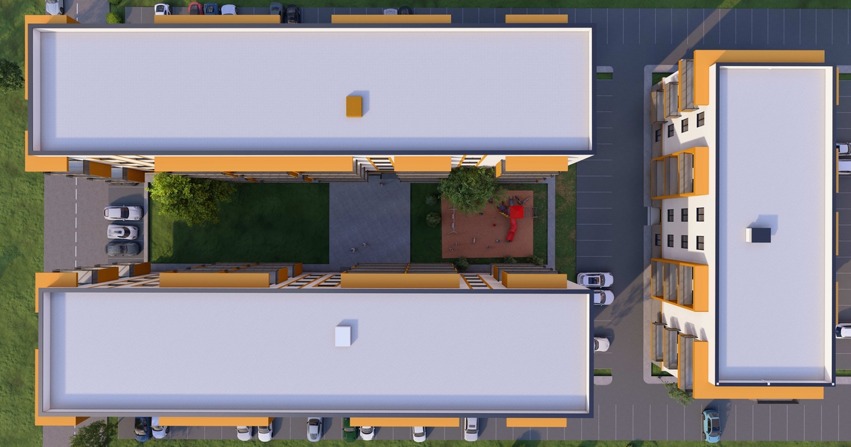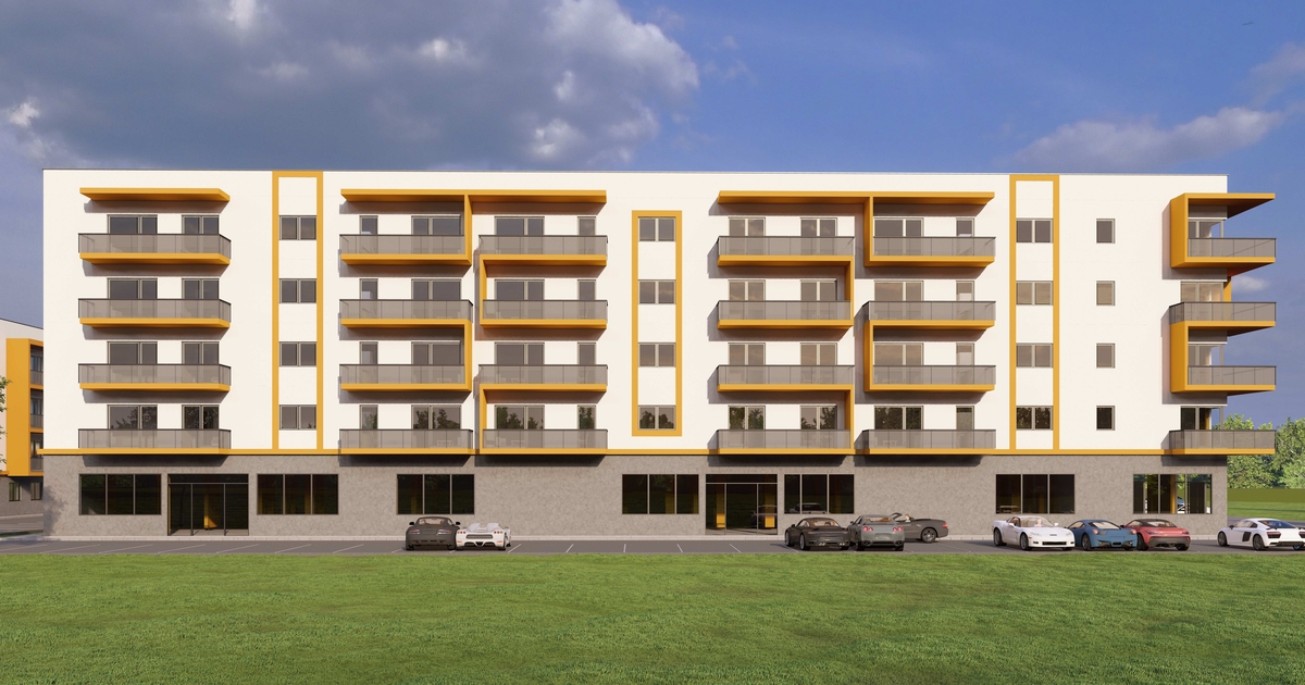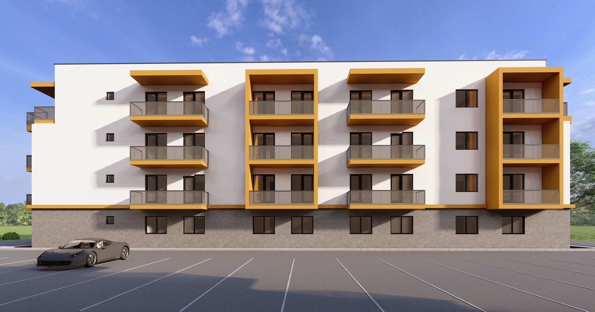 bloc P+4, Amprenta 734,50 mp la sol si etaje curente 854,5 x 4 - 4152,5 mp, 55 apartamente (5 studiouri , 45 -2 camere si 5 - 3 camere), 55 parcari.
