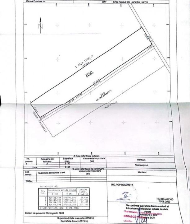 Va prezentam un teren intravilan pe raza Loc. Domnesti, Judet Ilfov, in suprafata de 6150 mp, cu deschidere la Str. Salciei de 30 metri. Pe strada Salciei sunt toate utilitatile: asfalt, gaz, curent, apa, canal si iluminat public.