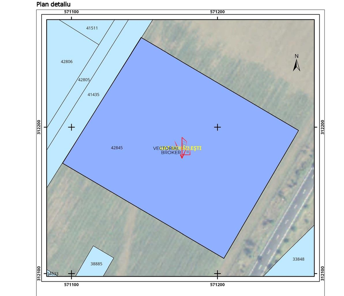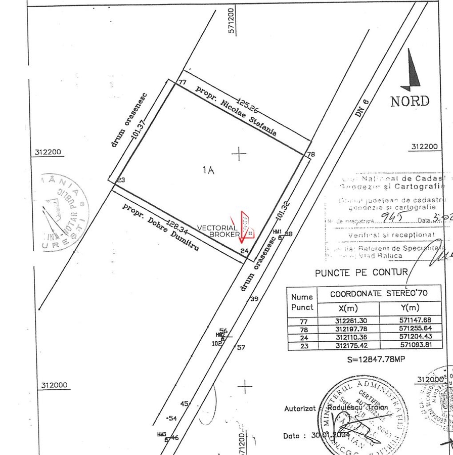 Proprietatea are o suprafata totala de 12.848 mp, cu o forma regulata (deschidere: 101 m / adancime: 125 m) si dubla deschidere - atat la DN6 (Drumul National 6), cat si la un drum orasenesc secundar - oferind multiple posibilitati de parcelare si dezvoltare. Terenul este ideal atat pentru proiecte industriale, cat si rezidentiale, avand acces facil si vizibilitate excelenta.