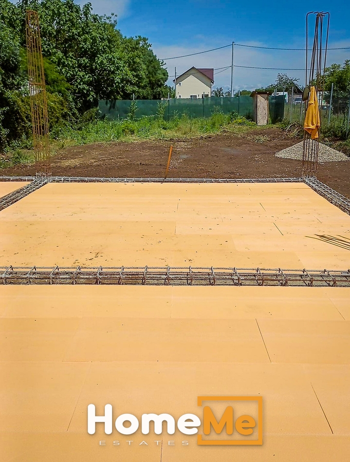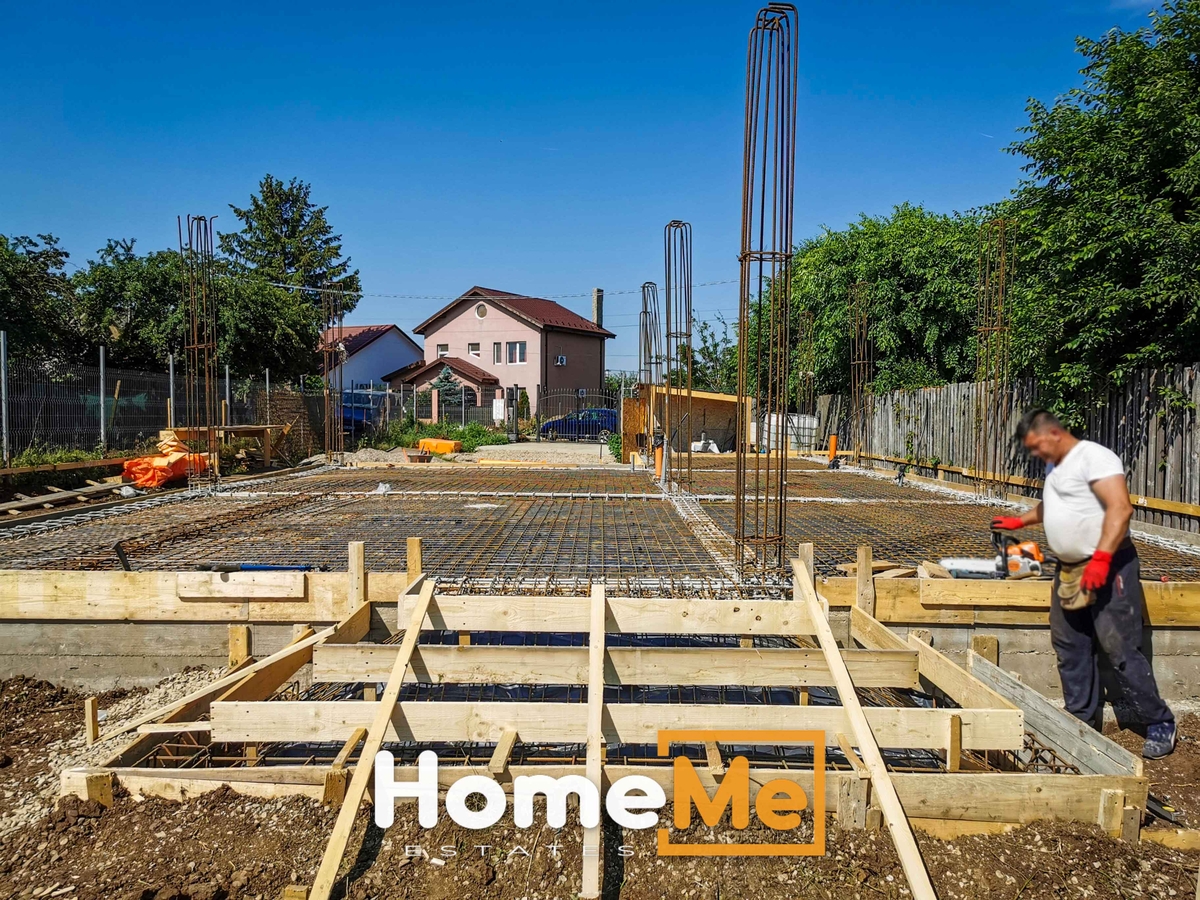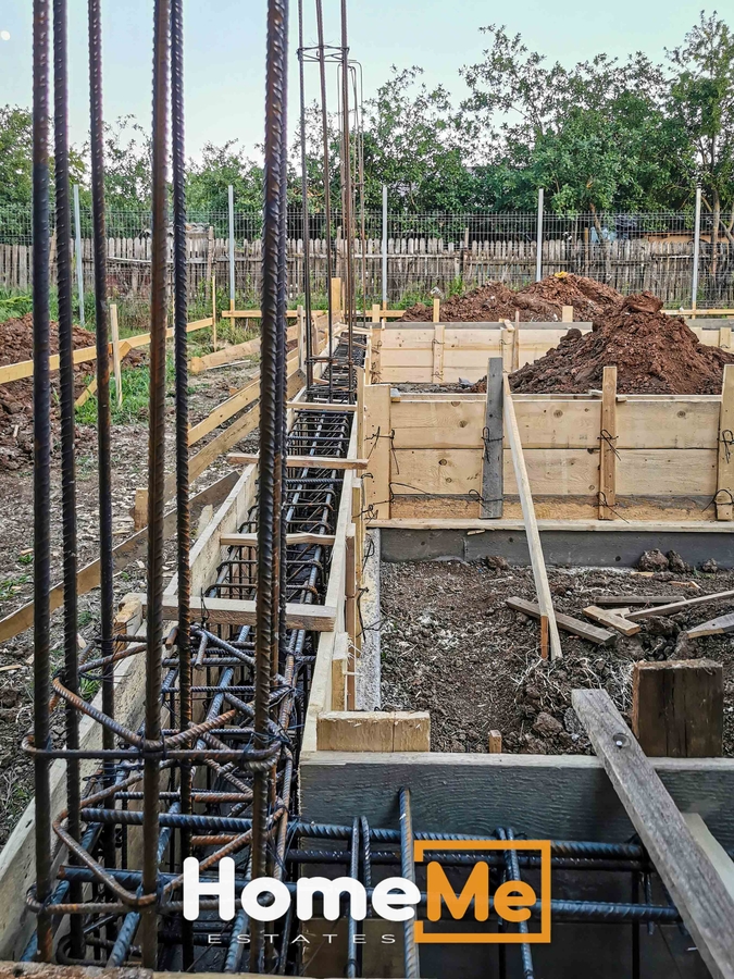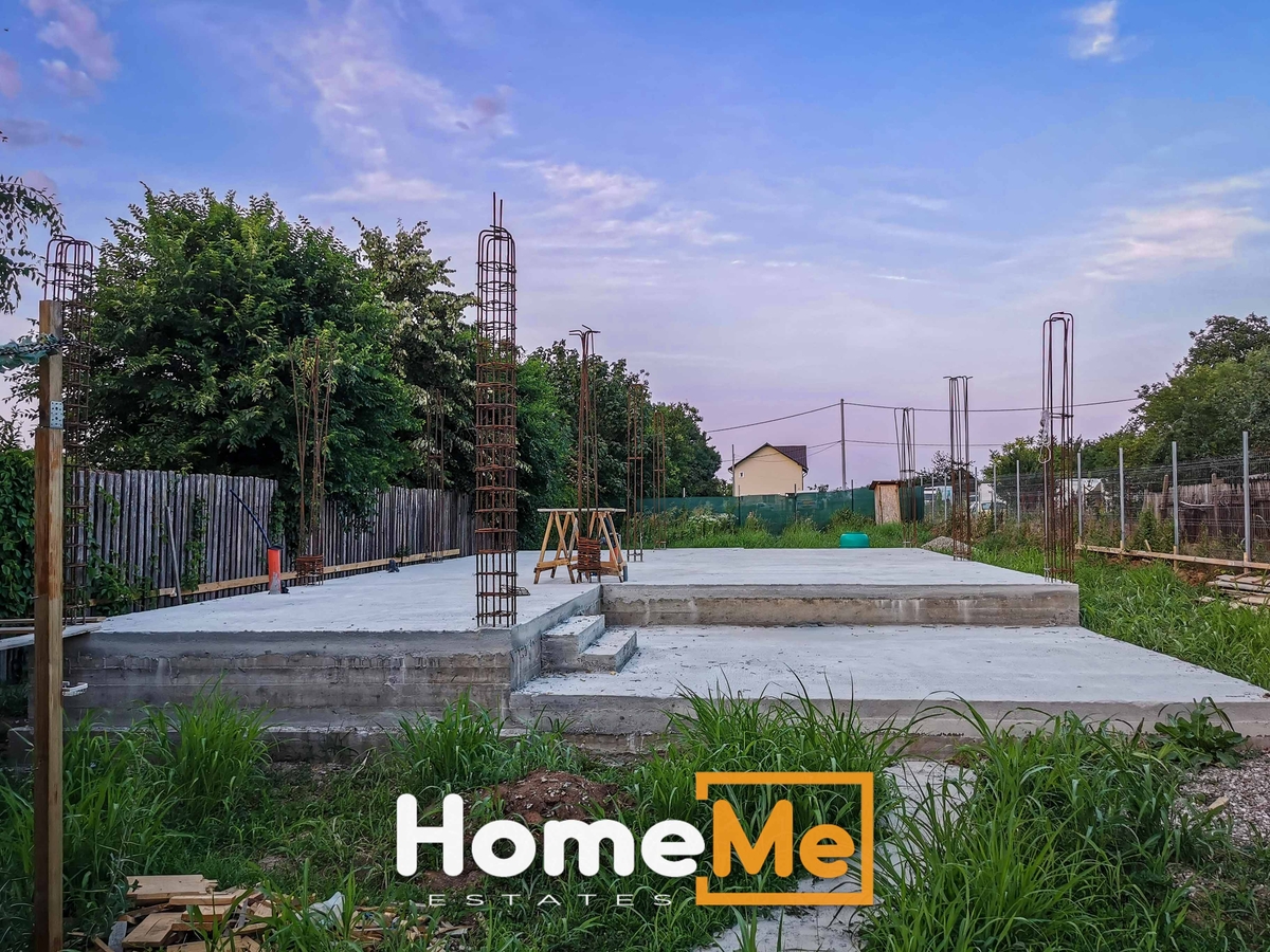 Terenul are o suprafata totala de 842 mp, cu o deschidere la drum de 15,01 m. Un avantaj major al acestei proprietati este existenta constructiei ajunse la stadiul de „cota 0”, placa fiind turnata in iunie 2024.
