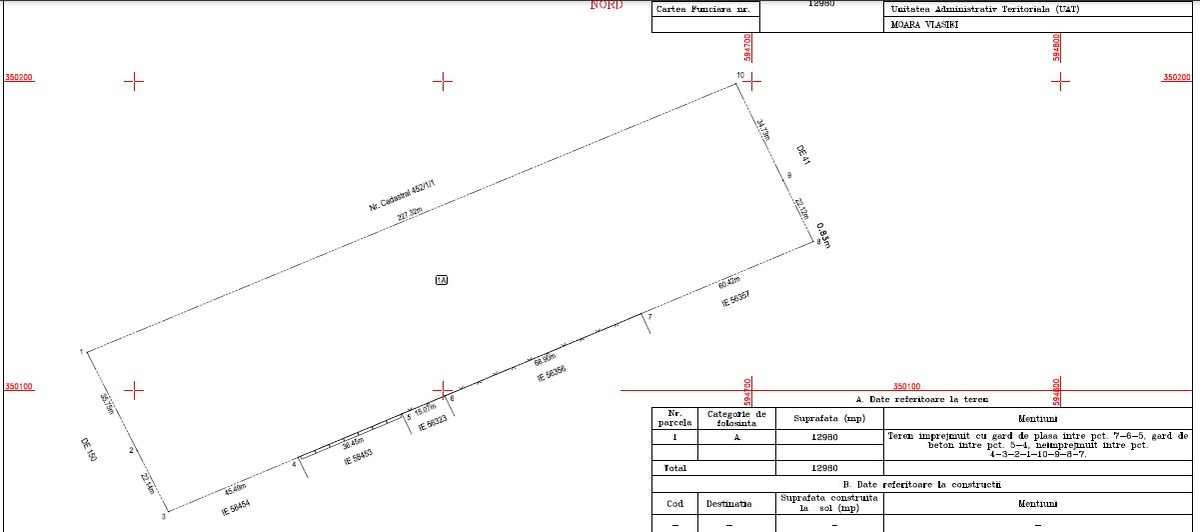Moara Vlasiei teren 13000 mp, deschidere 57 m la strada Vlasiei, lungime 228 m.