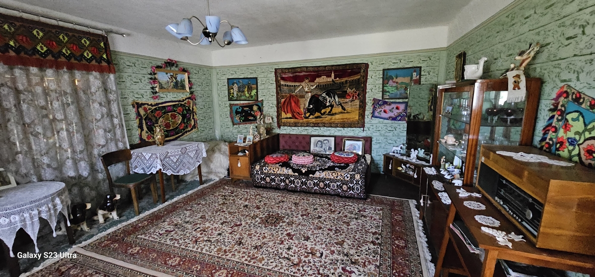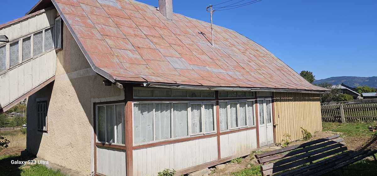 1. Casa mare, cu o suprafata construita la sol de 77 mp, este o constructie din lemn, din anul 1955, fiind compartimentata astfel: veranda, hol, 3 incaperi, mansarda partial.