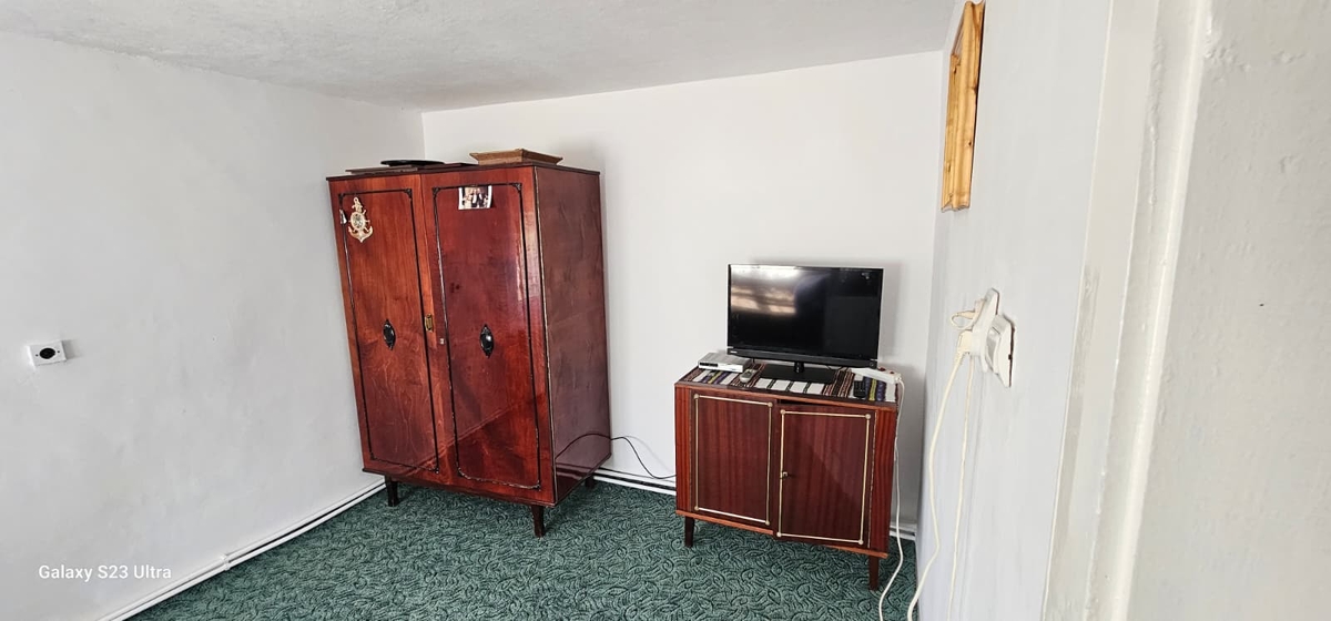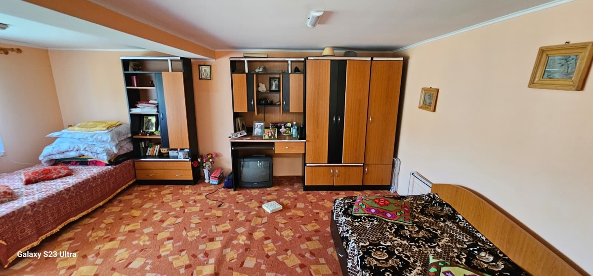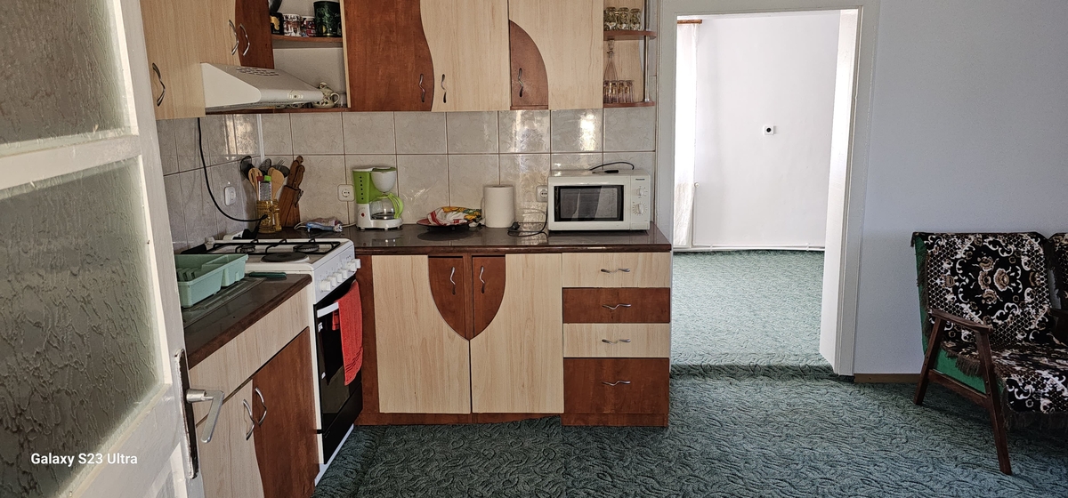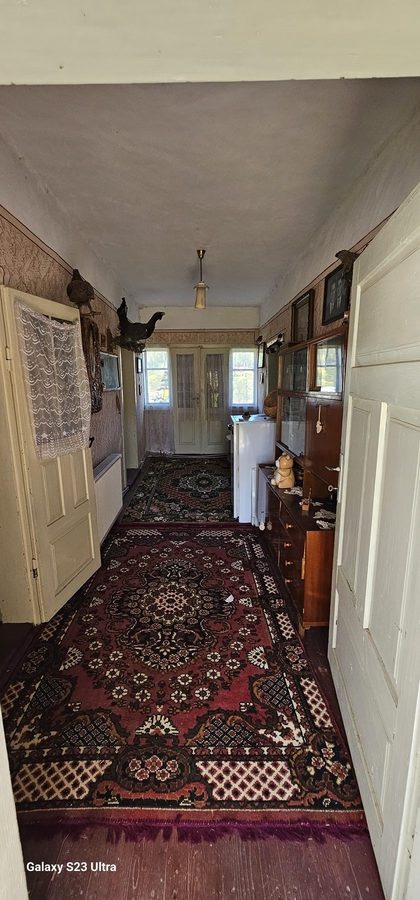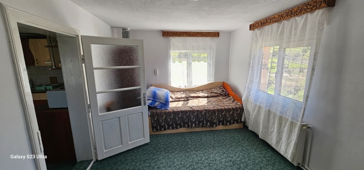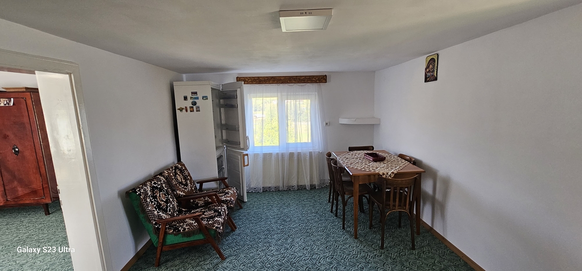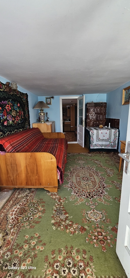 2. Casa mica, tot din lemn, cu o suprafata de 45 mp, construita in 1970, renovata. Cuprinde: hol, bucatarie mare cu loc de luat masa,1 dormitor, baie, acces la cele 2 dormitoare situate la mansarda casei mari, iar atasata acesteia exista camera tehnica cu centrala termica in condensare, care deserveste ambele case. Exista si un boiler electric pentru apa calda.