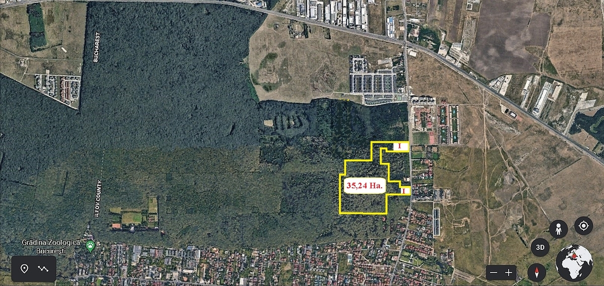 padurea Baneasa, vanzare teren forestier (padure) in suprafata de 35,24 Ha. cu 2 deschideri generoase la Sos. Pipera - Tunari din care suprafata de 1,83 Ha. este situat in intravilanul localitatii Voluntari.