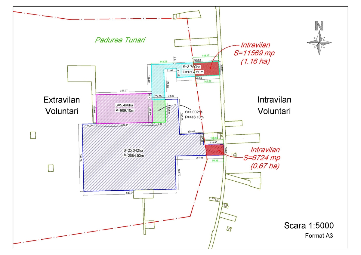 Regimul economic: functiunea zonei V5 – pentru suprafata de 33,41 Ha. – paduri de agrement si plantatii forestiere, este situata in extravilanul Localitatii Voluntari.