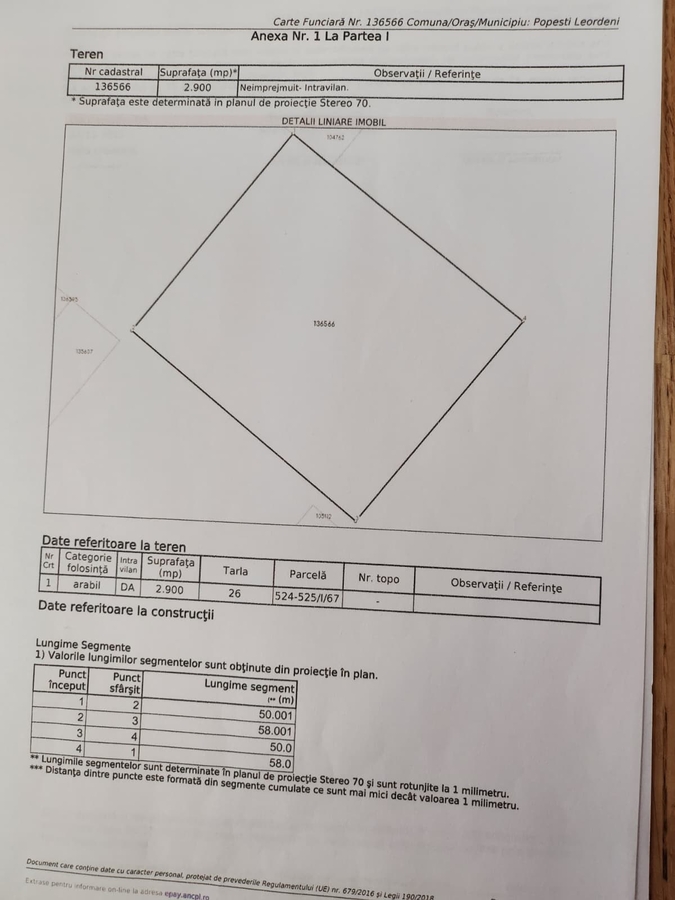 Vand teren intravilan in Popesti-Leordeni – Ilfov, 2.900 mp, cu deschidere generoasa (50 m x 58 m).