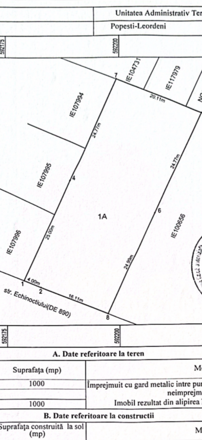 Vand teren cu toate utilitatile pe Str. Echinoctiului nr. 9, suprafata 1000 mp, deschidere - 20 m, P+3+4retras, Pot 50%, Cut 1,5, cadastru si intabulare, pret neg.