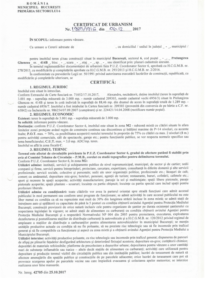 teren intravilan, construibil, 3000mp, deschidere=75 m, dimensiuni 75x40ml, situat pe Prelungirea Ghencea nr 414b intersectie cu strada Floare Galbena, sector 6, curent, gaze, canalizare se afla la 100m de teren, certificat urbanism scos in 2017, regim de inaltime p+14,pot=70%, cut=3, se afla la 400m distanta de viitoarea linie de tramvai de pe Prelungirea Ghencea