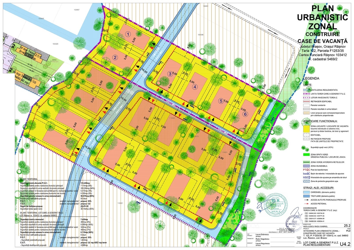 Este extravilan cu PUZ in avizare avand avizul de oportunitate obtinut, cu propunere de lotizare in 6 parcele pentru case de vacanta si realizarea drumului de acces. Vecinii sunt de acord cu realizarea drumului si exista acorduri notariale in acest sens.