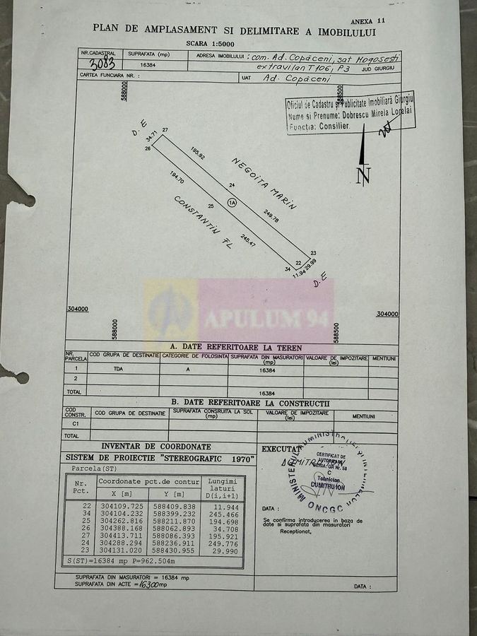 Suprafata: 16.300 mp (16.384 mp din masuratori)
