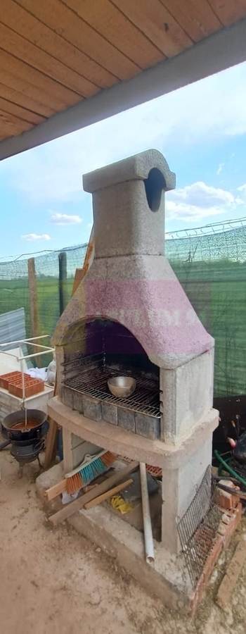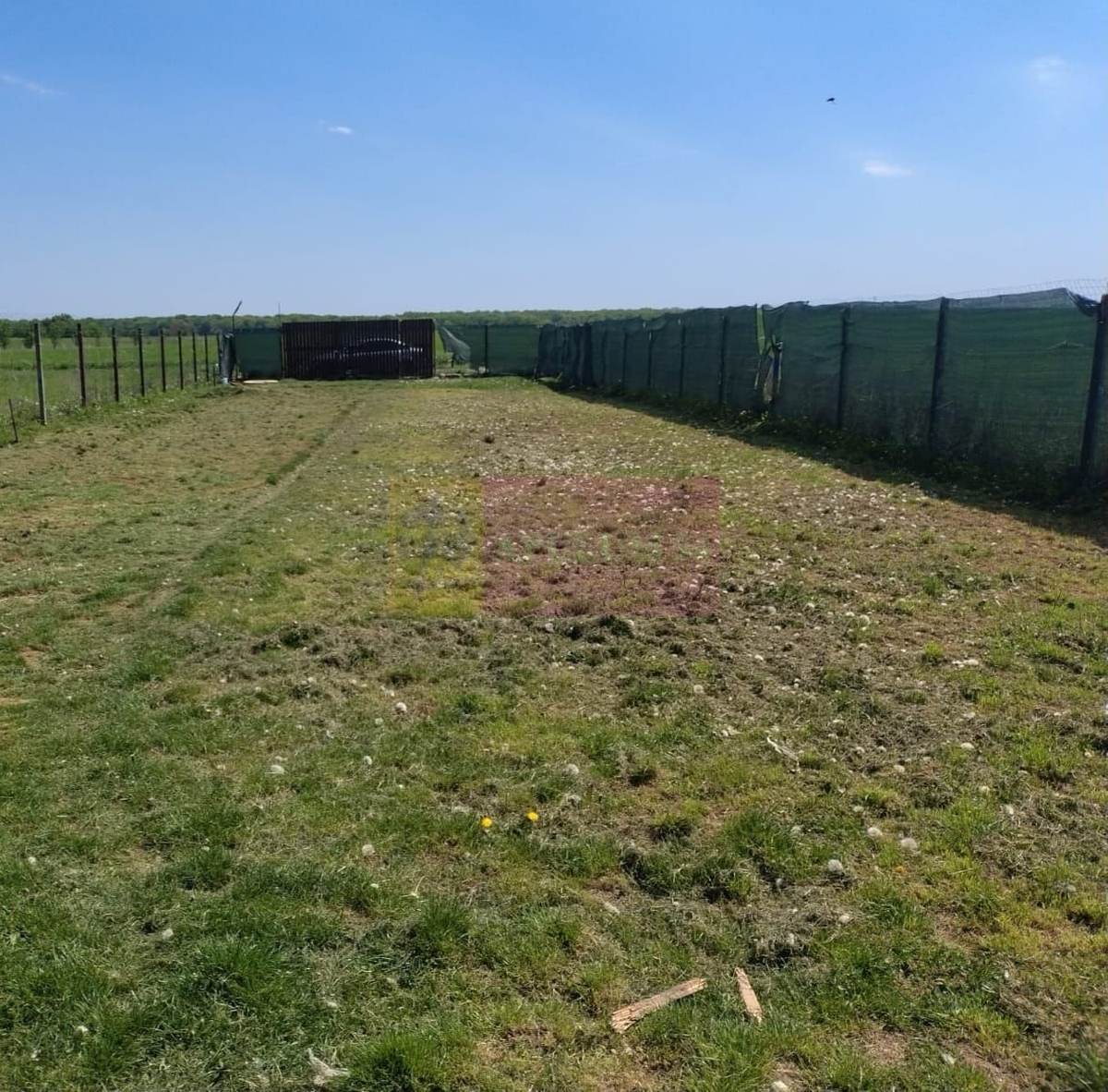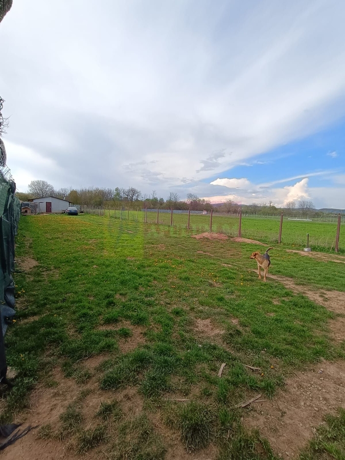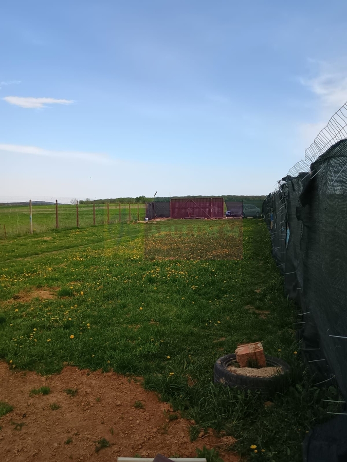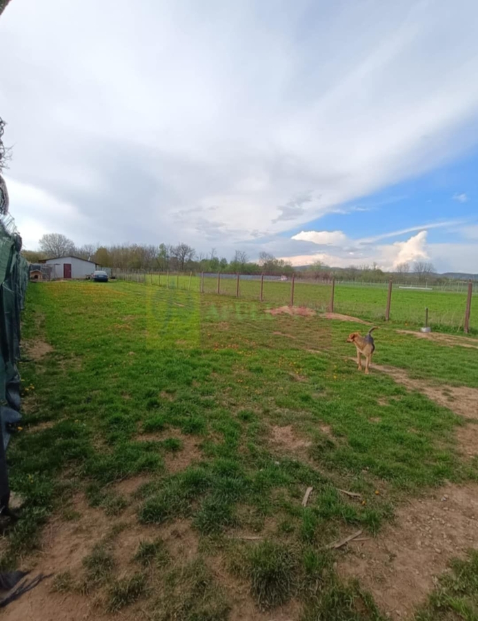 Terenul este imprejmuit si are o constructie la rosu din cadre de lemn.